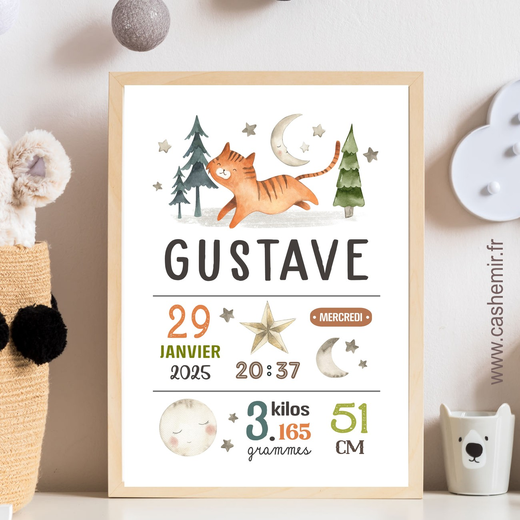 Affiche de Naissance Tigre 13.90€ Jolie affiche personnalisée pour décorer la chambre de votre enfant ou pour faire un cadeau de naissance original. Cette affiche est imprimée sur un Papier Mat de haute qualité (160g/m²) avec une Impression Professionnelle. Affiche imprimée au format A4. ![]() Cette affiche peut également être achetée en version numérique à imprimer soi-même (dans ce cas, le fichier pourra être imprimé jusqu'au format A3). |